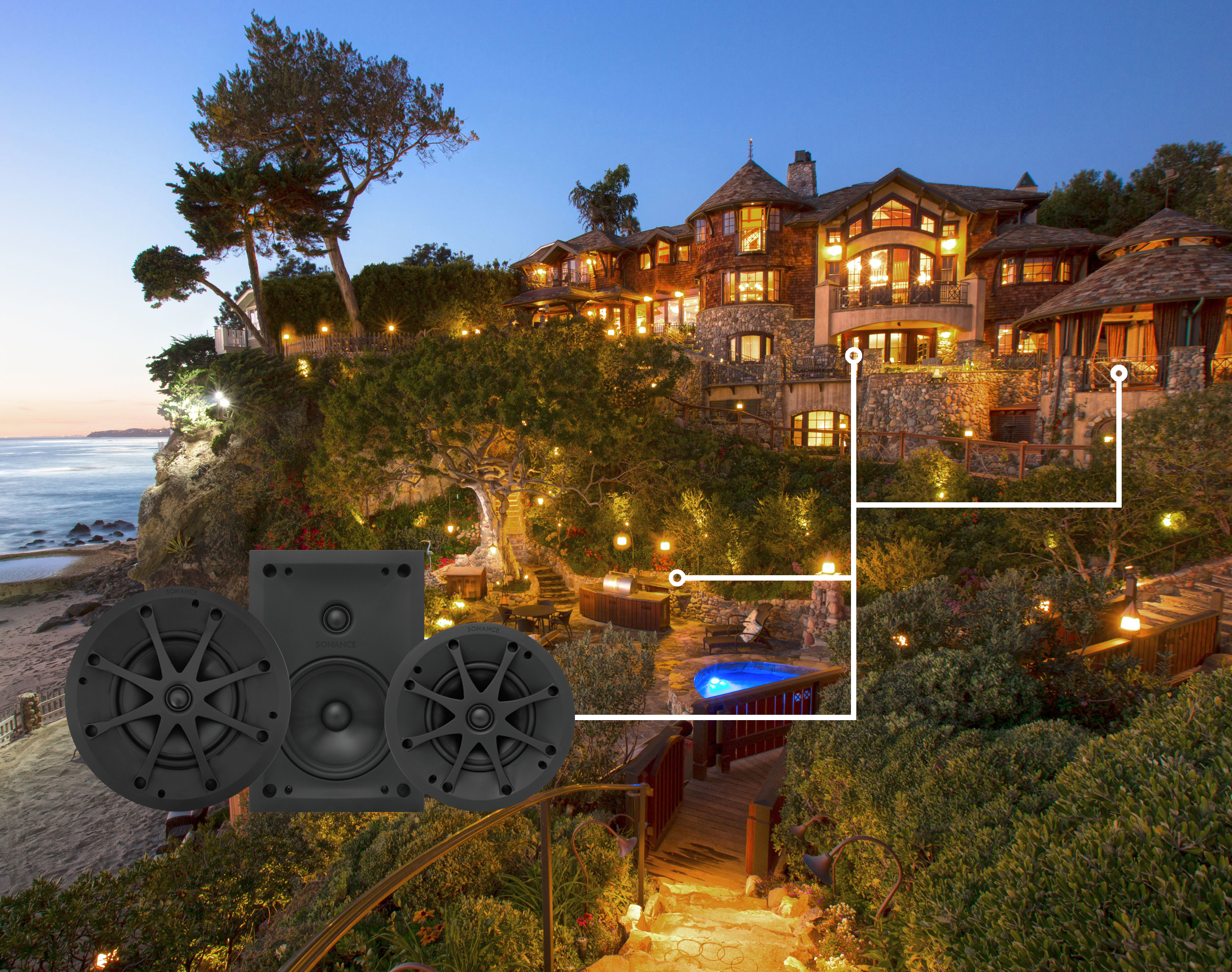 There are a variety of scalable outdoor options. The speakers and subwoofers deliver perfectly even volume coverage and unbelievable sound quality throughout any size space. The satellite speakers provide jaw-dropping sonic performance in small packages that can be installed below-ground, completely hidden from sight. The Garden Series takes elements from the satellite products and creates a simply scaled system ideal for outdoor areas up to 3,500 square feet. The Patio Series was developed for small scale spaces that deserve even, balanced coverage of great audio performance.