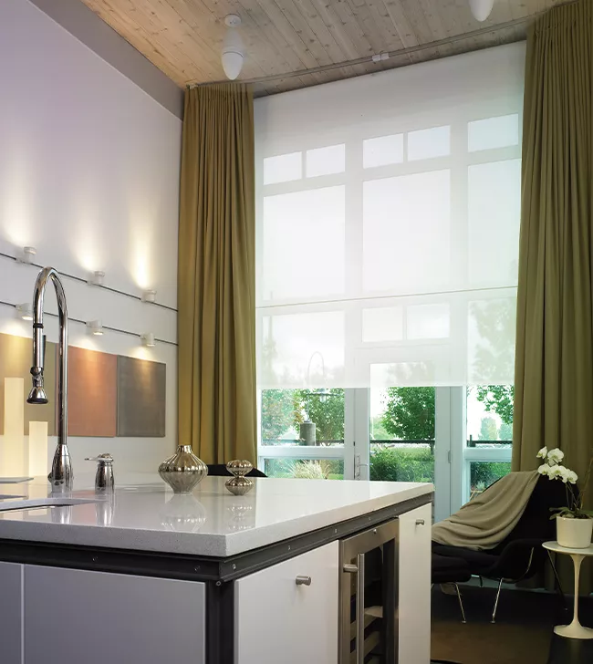 Our automated window shades offer a harmonious blend of style and functionality. Choose from a wide range of luxurious fabrics, patterns, and colors to complement your interior design. Experience the transformative power of light as it dances through your shades, creating stunning visual effects and setting the mood for any occasion. Experience energy efficiency like never before. Our automated window shades can be integrated into your smart home system, allowing you to optimize natural light and reduce energy consumption. Embrace sustainability while enjoying the benefits of a well-lit, comfortable space that adapts to your lifestyle.
